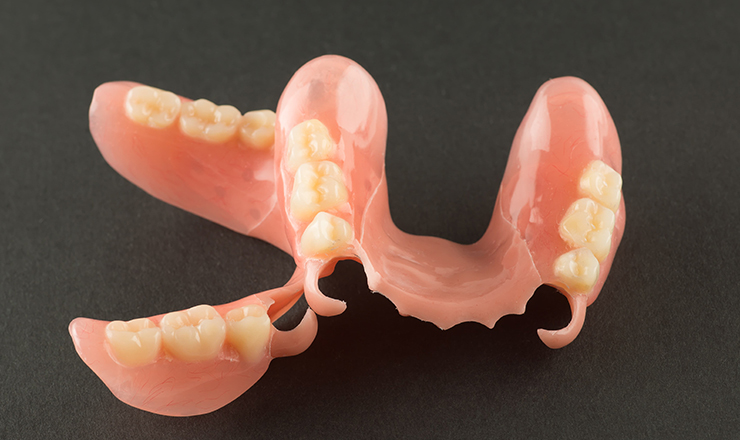 金属の掛け金を使わずに装着できる部分入れ歯です。入れ歯全体に弾力性のある樹脂を使用しているため、歯ぐきにしっかりフィットし、見た目も目立ちません。