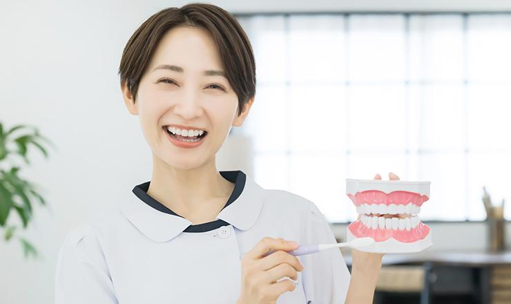 空き時間には他の衛生士のフォローに入ったり、ブラッシング指導や診療アシストなども行い、チームで支え合っています。