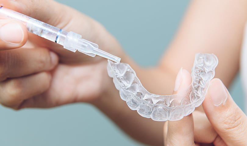 ホームホワイトニングは、歯科医院で作製したマウスピースに薬剤を入れ、自宅で装着して行う方法です。1日1時間~2時間ほどの使用を継続し、2週間程度で効果を実感できるケースが多いです。即効性はオフィスホワイトニングに劣るものの、薬剤の濃度が低いため刺激が少なく、白さが比較的長持ちします。